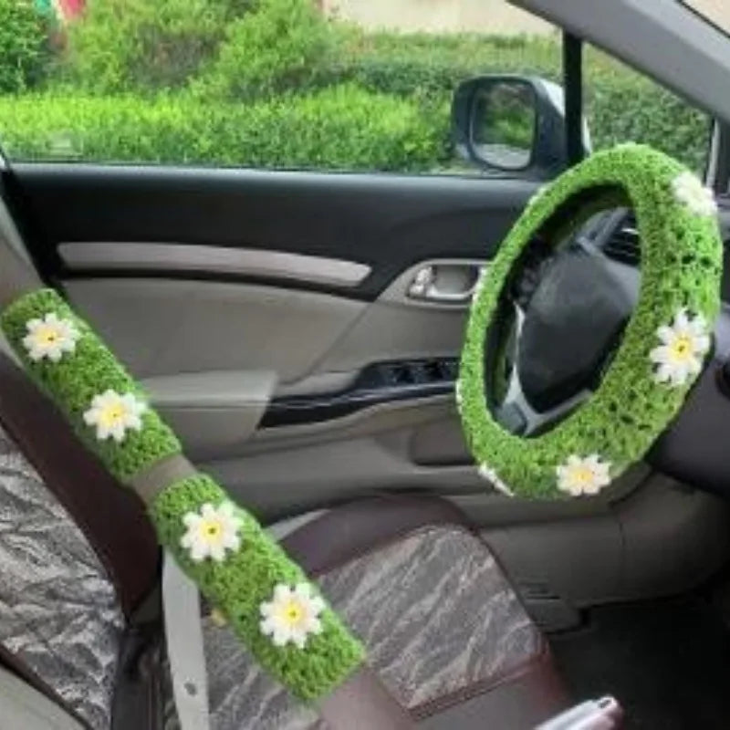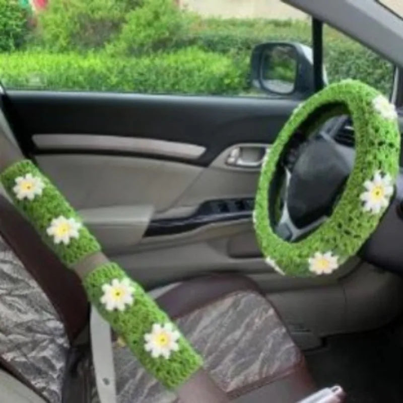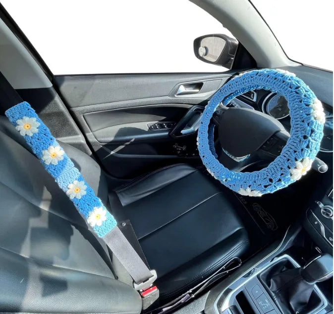 Transform your vehicle's interior with these artisan-crafted crochet steering wheel covers, featuring an elegant handmade crocheted flower design. Each cover is meticulously created to provide both aesthetic appeal and functional comfort during every drive. Whether you're navigating winter roads or summer commutes, these steering wheel covers for winter and year-round use deliver a personalized touch to your automobile's cabin.