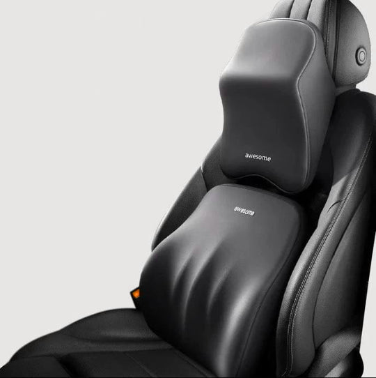 Lumbar support for car featuring ergonomic pillows & seat cushions for better posture and comfort.