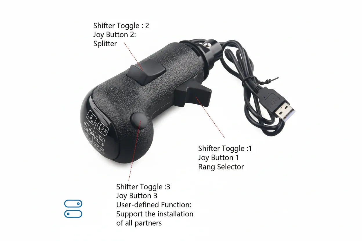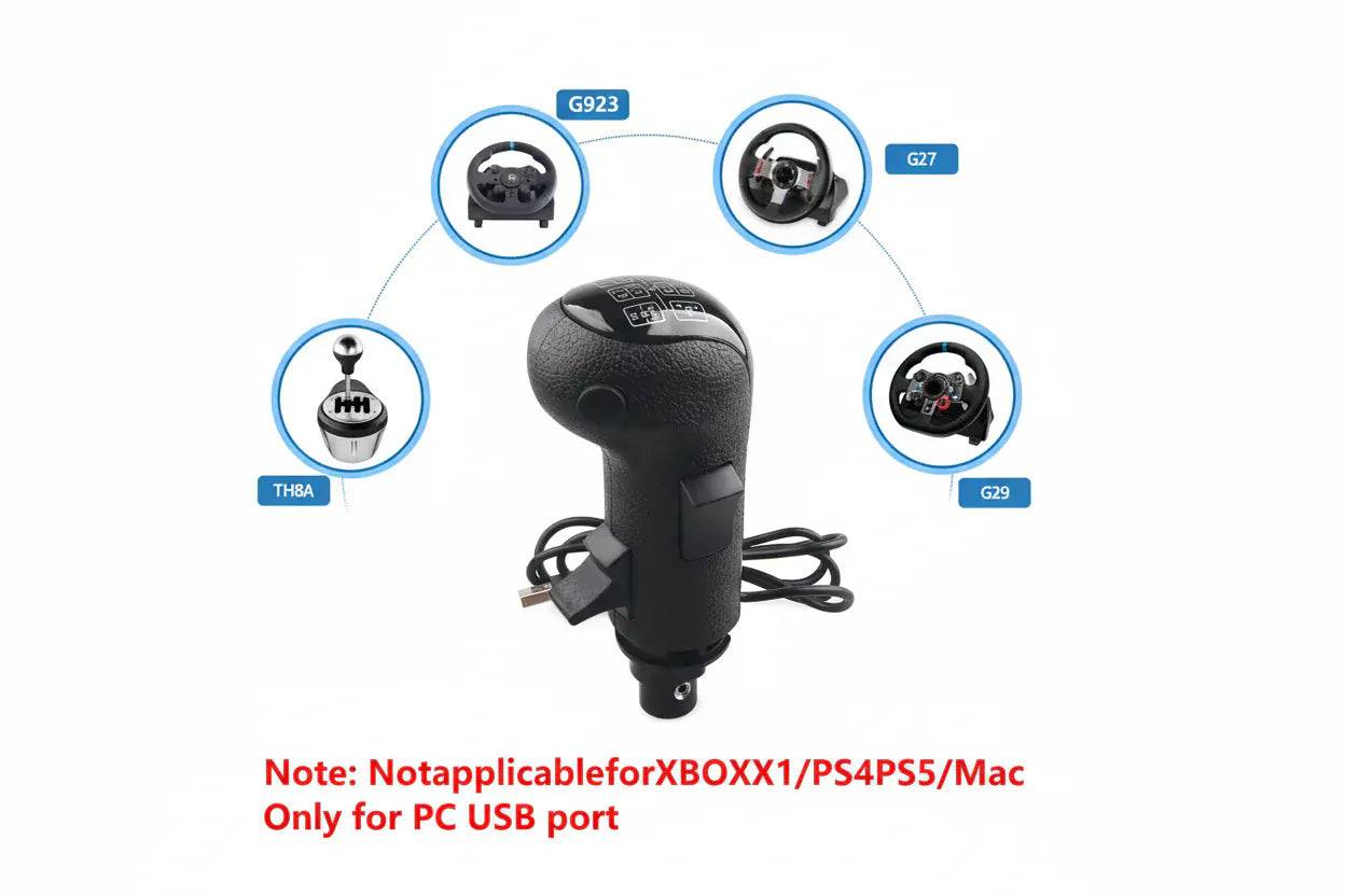 This advanced auto gear shift knob features high and low gear switching via integrated toggle switches, allowing up to 18 gear configurations. Built for reliability and ease of use, it connects via independent USB with true plug-and-play functionality, making it an essential car accessories upgrade for PC simulation setups.