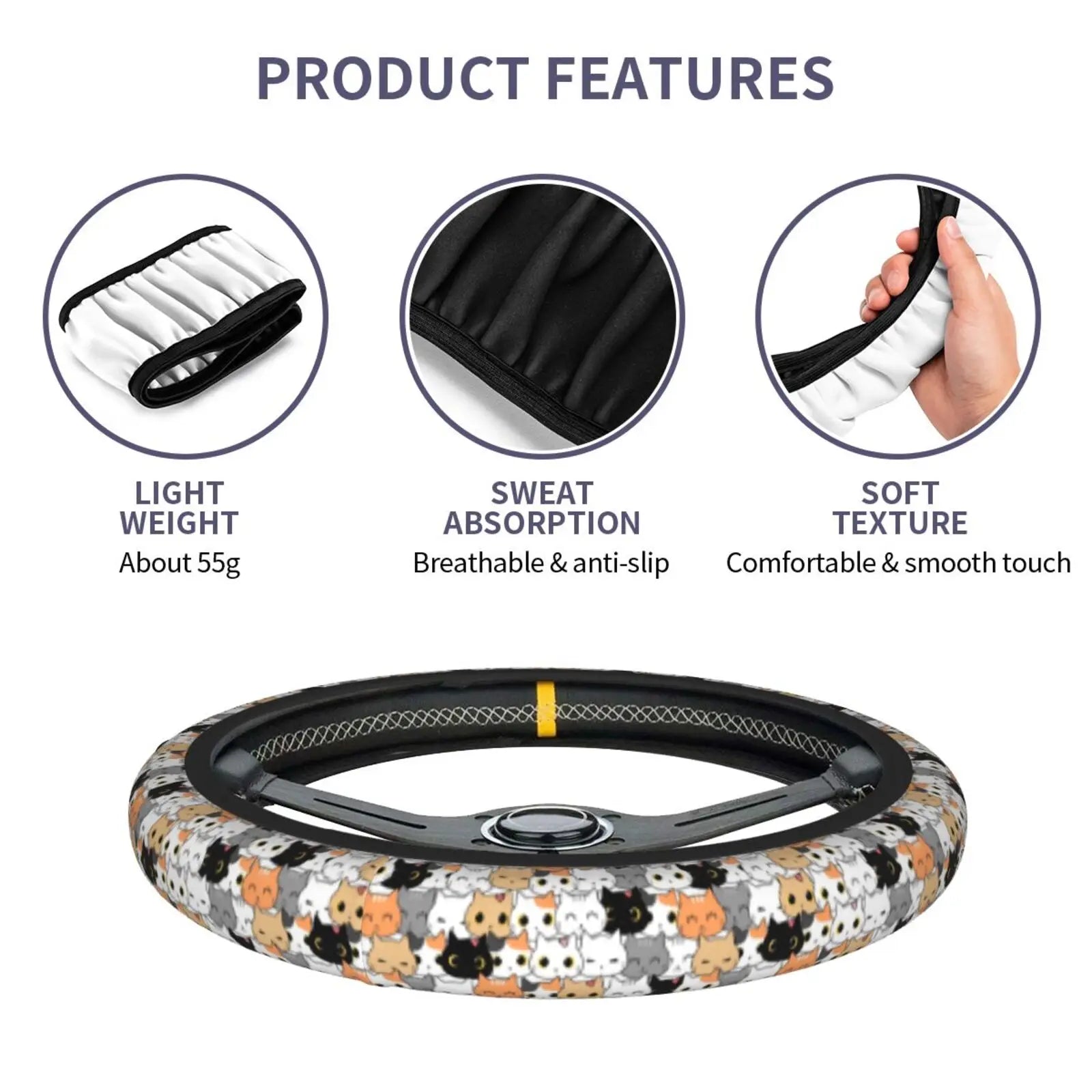 - Funny Steering Wheel Cover | Anti-Slip Cute Cats Pattern