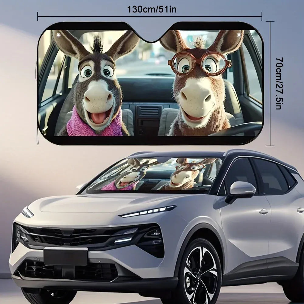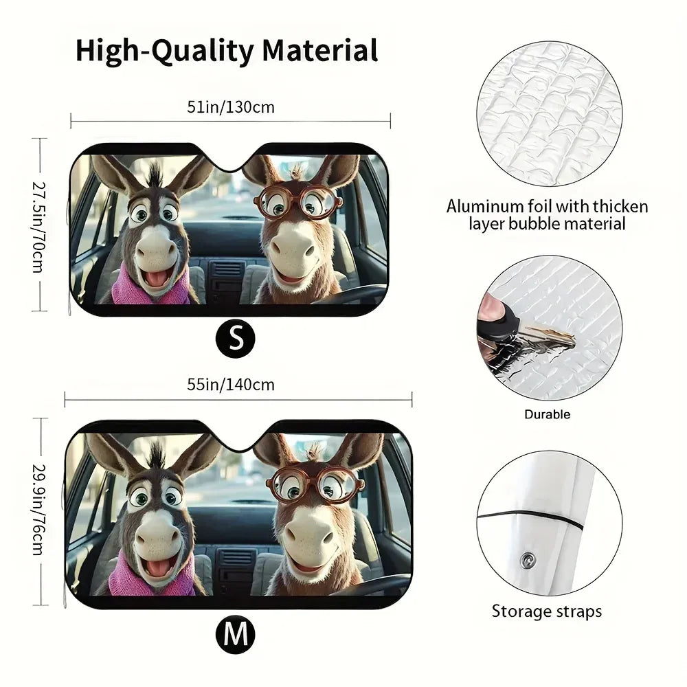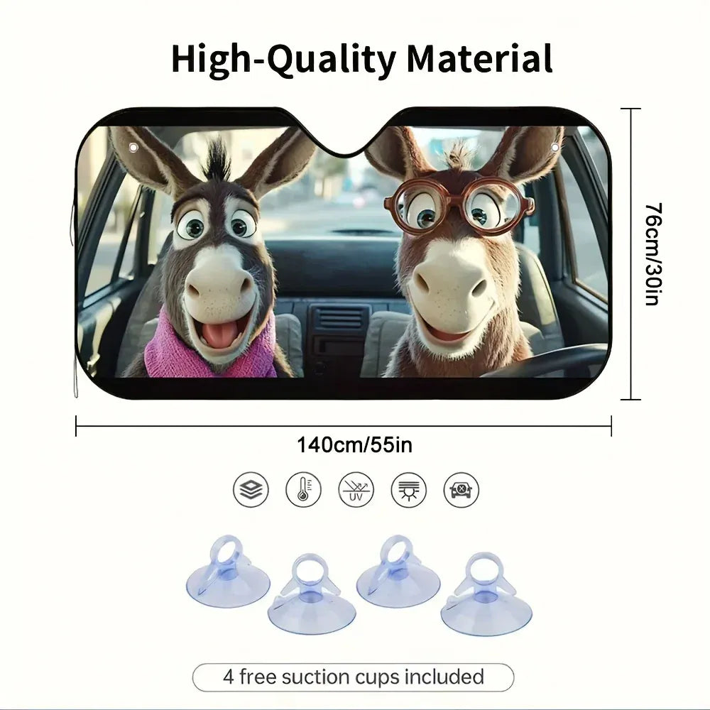 Premium Cute Donkey Front Windshield Cover with 4 Suction Cups -Ultimate Car Sunshade Front Windows Solution for Your Vehicle.